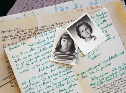*Photo taken from “50 years later, ‘PedroPan’ children celebrate escape from Castro’s Cuba,” Palm Beach Post, Dec. 17, 2010. Lona O’Connor wrote the article. I cannot find the name of the photographer. Ofe’s picture is in the center, mine on the right, both on top of some of the original letters I wrote to her.